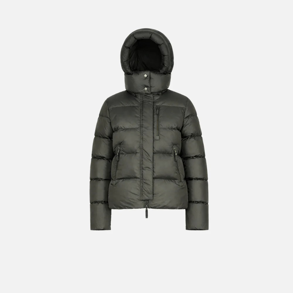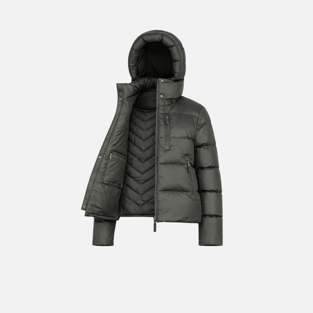 Doudoune premium en capuche au design épuré et féminin, avec une silhouette élégante et un look isolé et raffiné. La fermeture zippée sur toute la longueur et le col montant apportent une finition soignée, tandis que l'intérieur moderne offre une allure sophistiquée lorsqu'elle est portée ouverte. Pensée pour les journées froides, stylée aussi bien pour l'après-ski que pour l'hiver en ville.